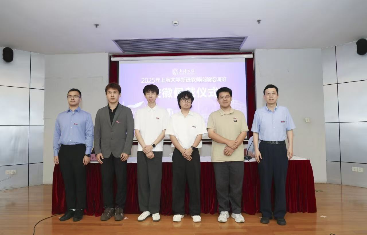 校党委副书记段勇为教师代表佩戴校徽,在场新进教师共同分享属于“上大人”的自豪和荣耀。