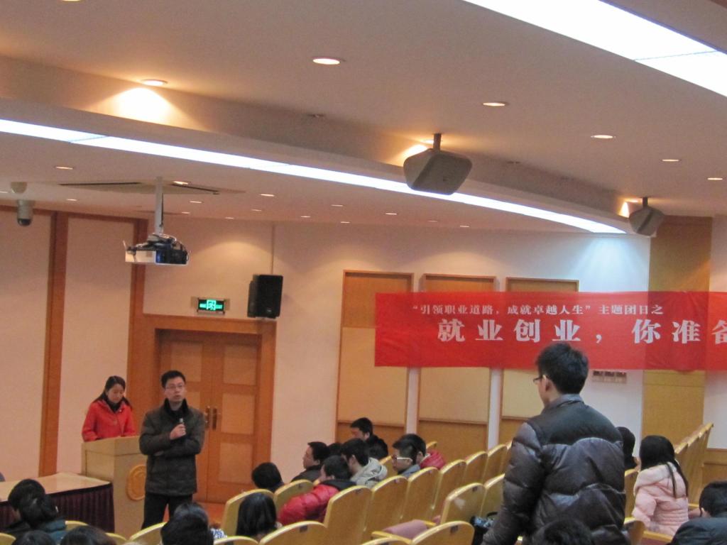 2013年1月11日上午,科技园区受邀参加由理学院研究生团总支举办的“引领职业道路,成就卓越人生”就业创业交流活动。出席活动的领导和嘉宾有理学院副院长兼党委书记方建慧教授,研究生专职委员张印兰老师、郭晓光老师以及科技园区副总经理劳剑东老师、大学生创业部张丽老师和上海维略信息科技有限公司总经理冯晓刚先生。